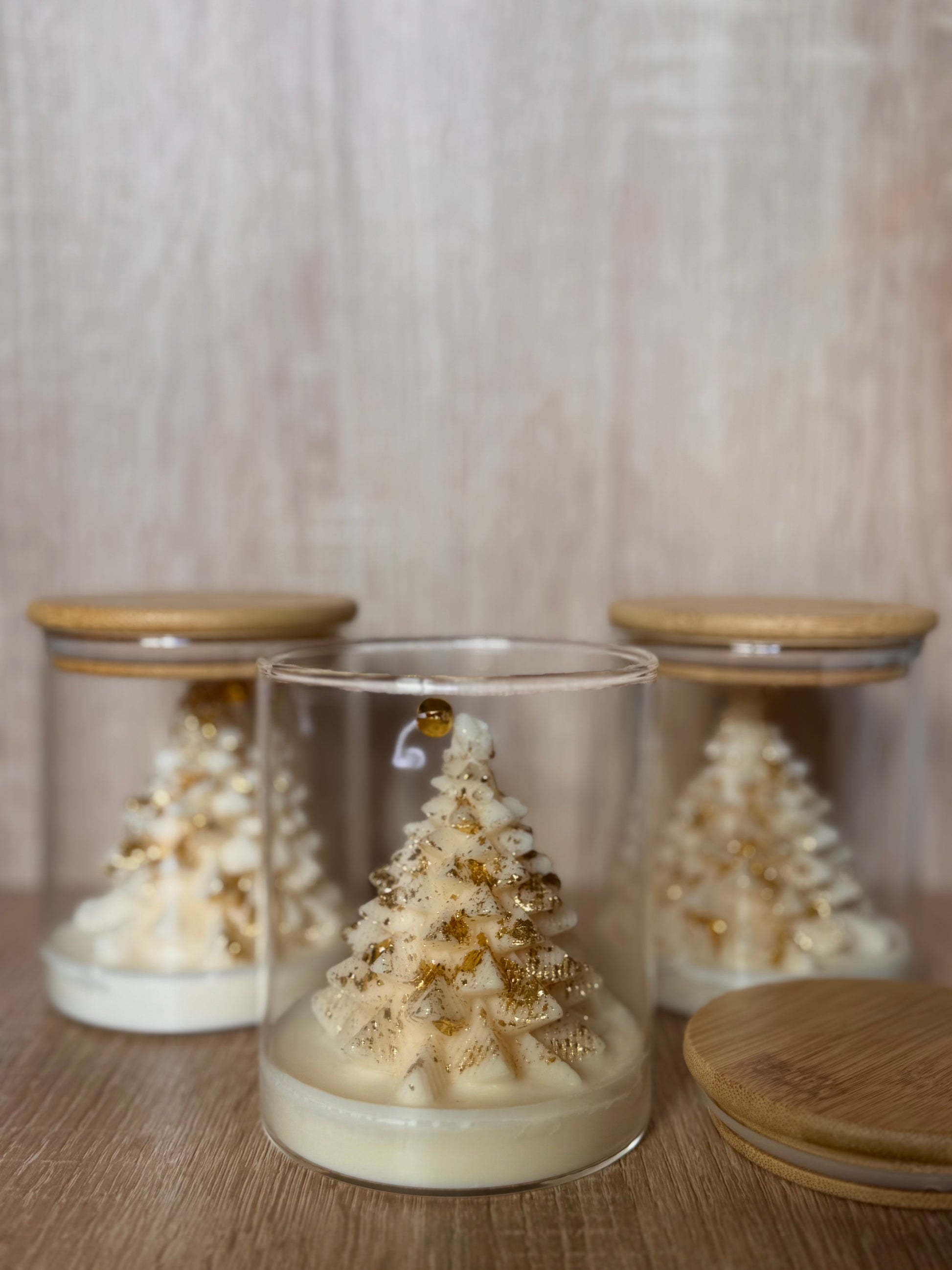 Envuelta en un diseño mágico y luminoso, la vela Bosque Dorado captura la esencia más pura de la Navidad. Su delicada figura en forma de abeto, bañada en destellos dorados, ilumina cualquier rincón con un toque festivo y elegante.