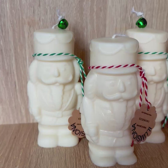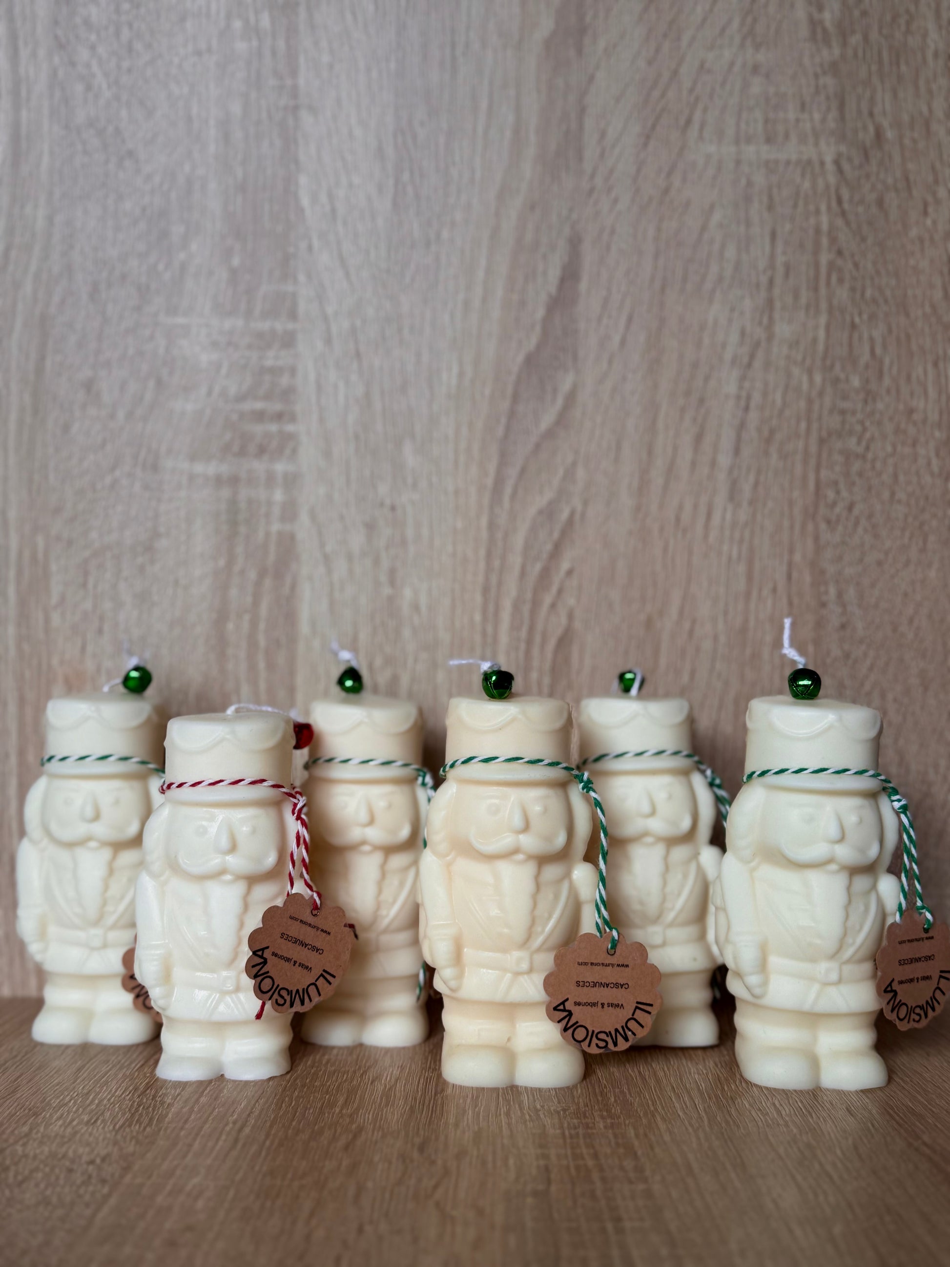 Da la bienvenida a la magia de la Navidad con nuestra vela en forma de cascanuez, una pieza decorativa que combina tradición, elegancia y calidez. Hecha a mano con cera de soja 100% vegetal, es una opción natural, sostenible y respetuosa con el medio ambiente.