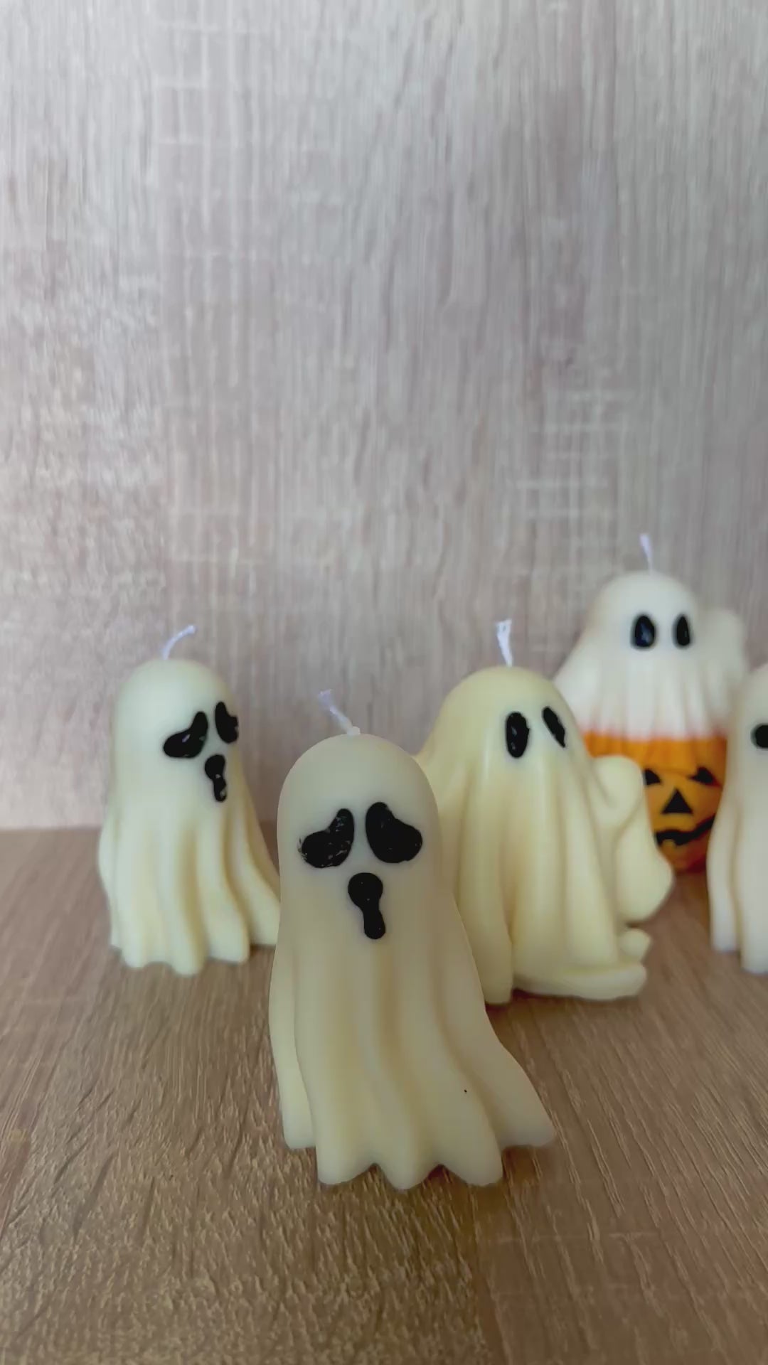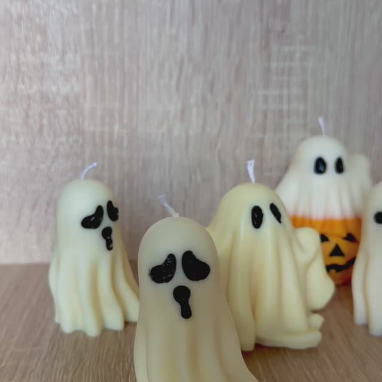 Dale un toque divertido y misterioso a tu decoración con nuestras velas con forma de fantasma, ideales para celebrar Halloween con estilo. Hechas a mano con cera de soja 100% vegetal, ofrecen una combustión limpia y respetuosa con el medio ambiente.