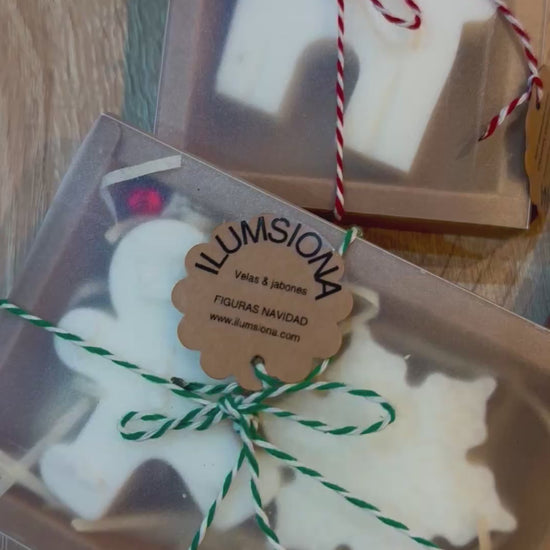 Descubre la magia de los pequeños detalles con nuestro set de dos velas navideñas, presentadas en una delicada cajita lista para regalar. Cada figura está elaborada a mano con cera de soja 100% vegetal, ofreciendo un acabado suave y natural que aporta calidez a cualquier rincón.