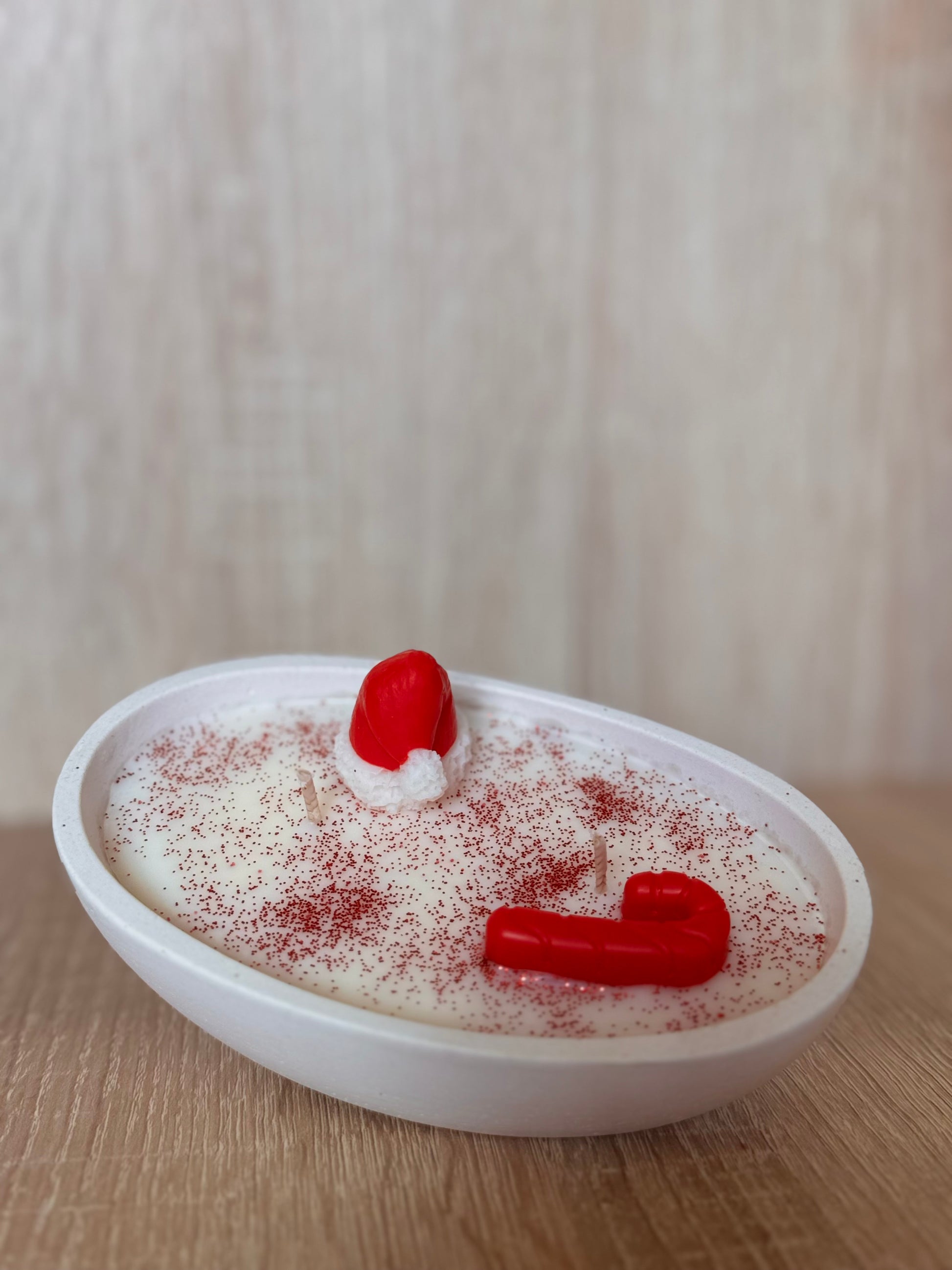 Llena tu hogar de espíritu navideño con nuestra vela “Santa Derretido”, una pieza artesanal que combina humor, ternura y el inconfundible aroma de la Navidad.